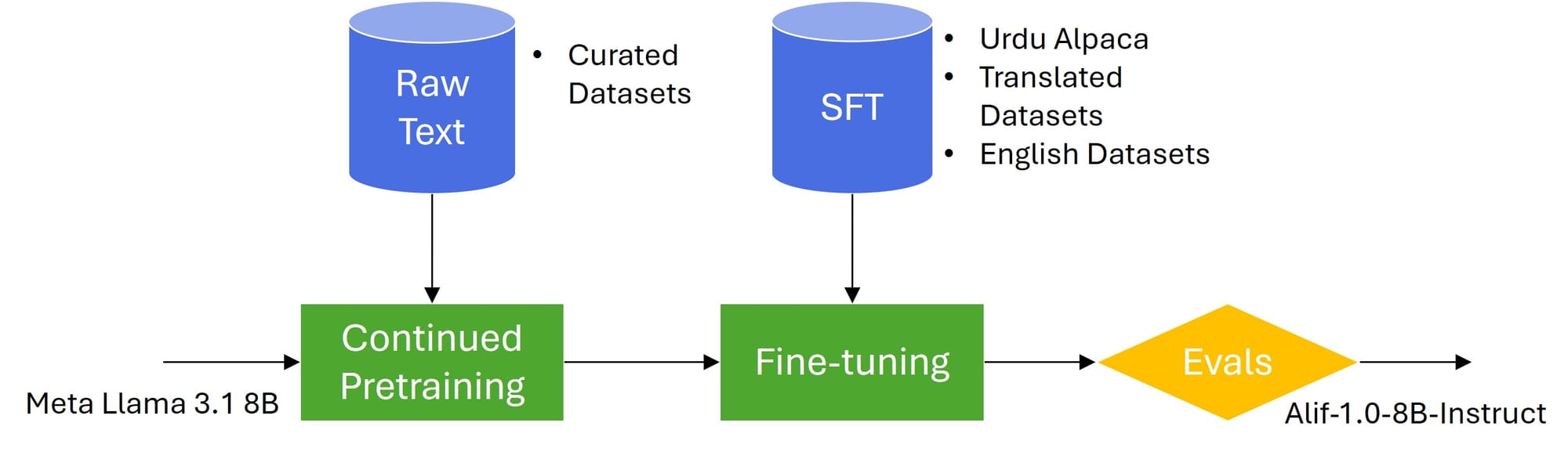 - Continued Pretraining: We have leveraged Urdu Wikipedia and other curated data sources to strengthen foundational knowledge of Urdu language.